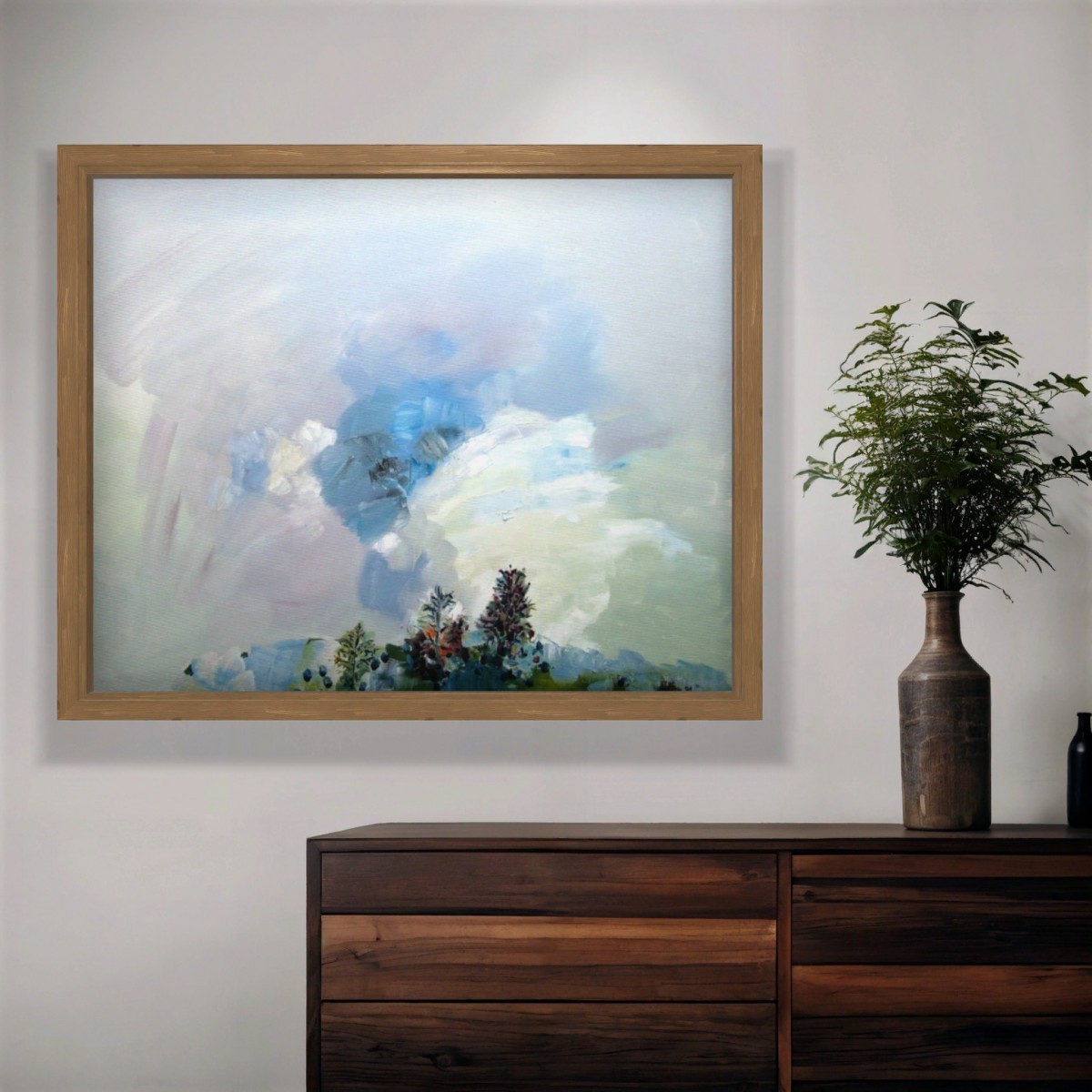 "Ciel paysage" ©alainhalter 1981. Peinture à l'huile sur toile tendue sur châssis. Année : 1981. Format 25F : 81 (largeur) x 65 (hauteur) cm. Hors encadrement. Pièce unique. Encadrement sur demande avec devis.