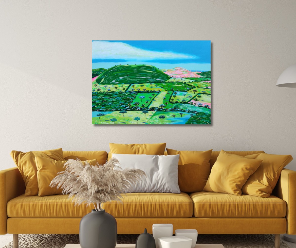 The painting is 2 cm deep and can be hung without an additional frame, also all picture sides are painted.