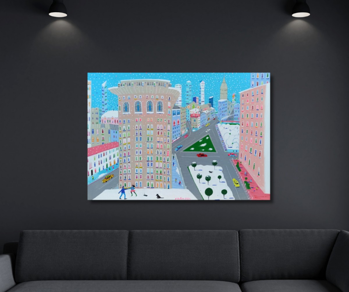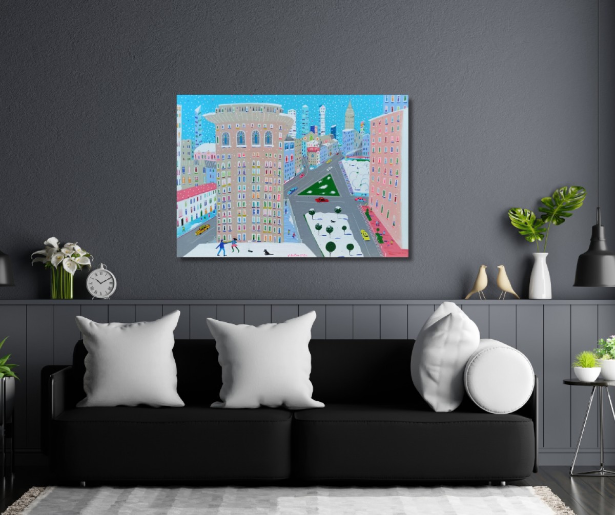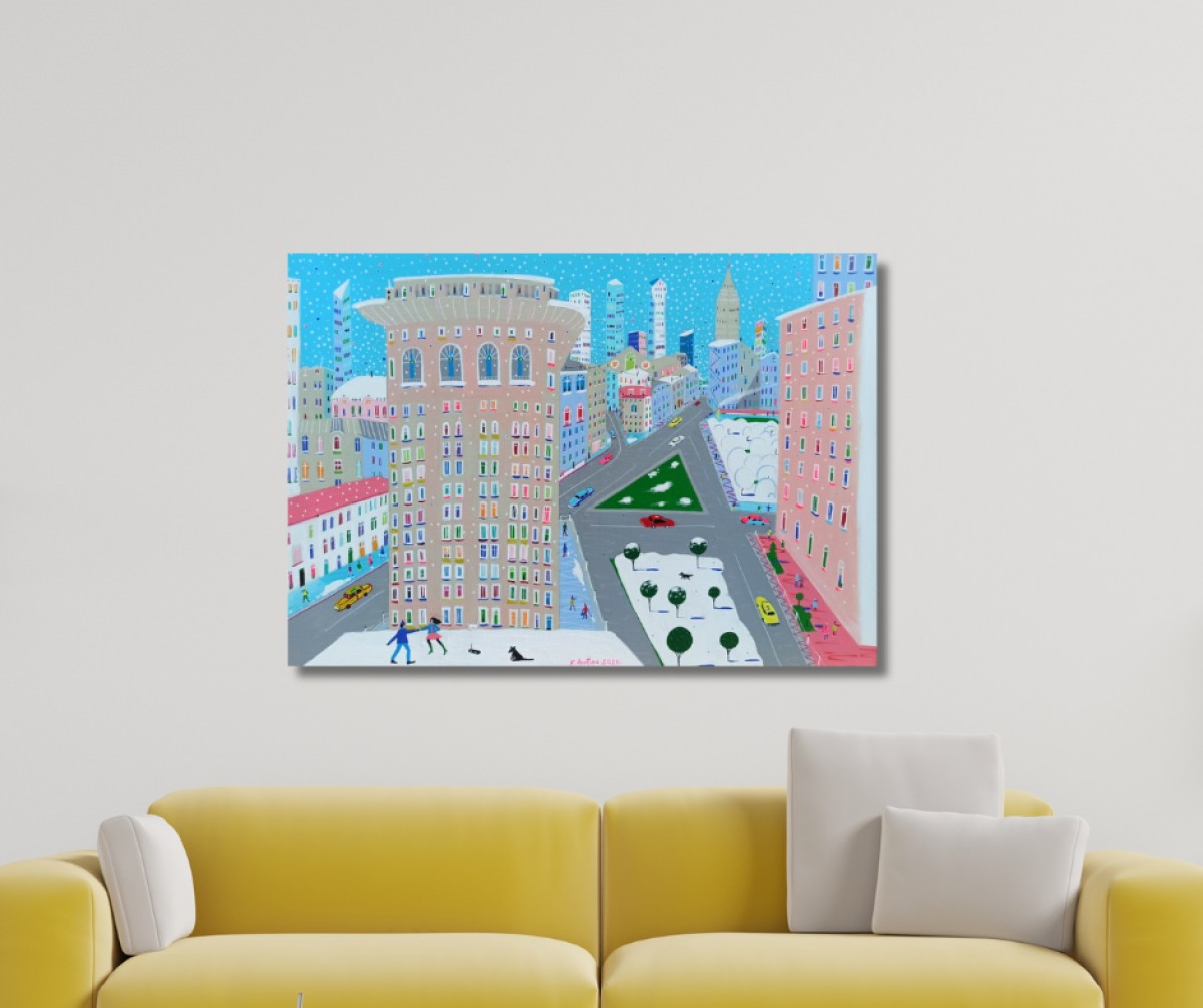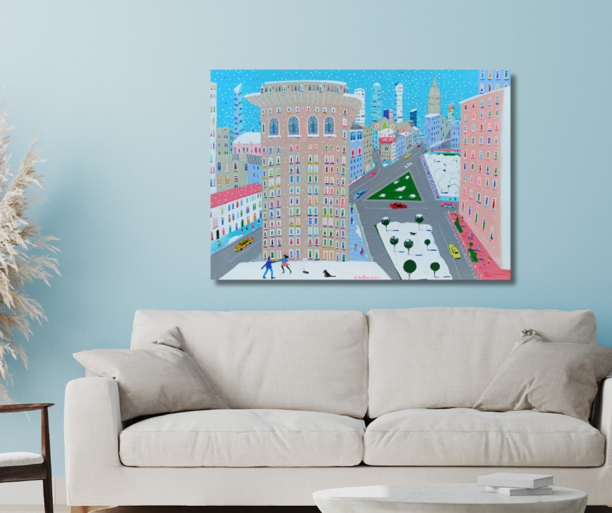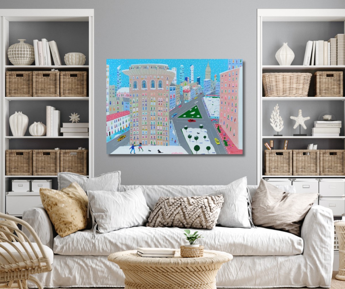 The painting is 2 cm deep and can be hung without an additional frame, also all picture sides are painted.