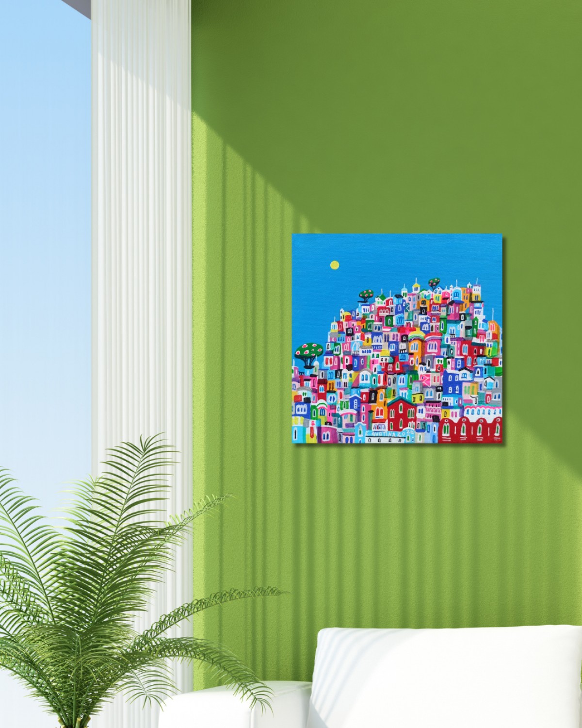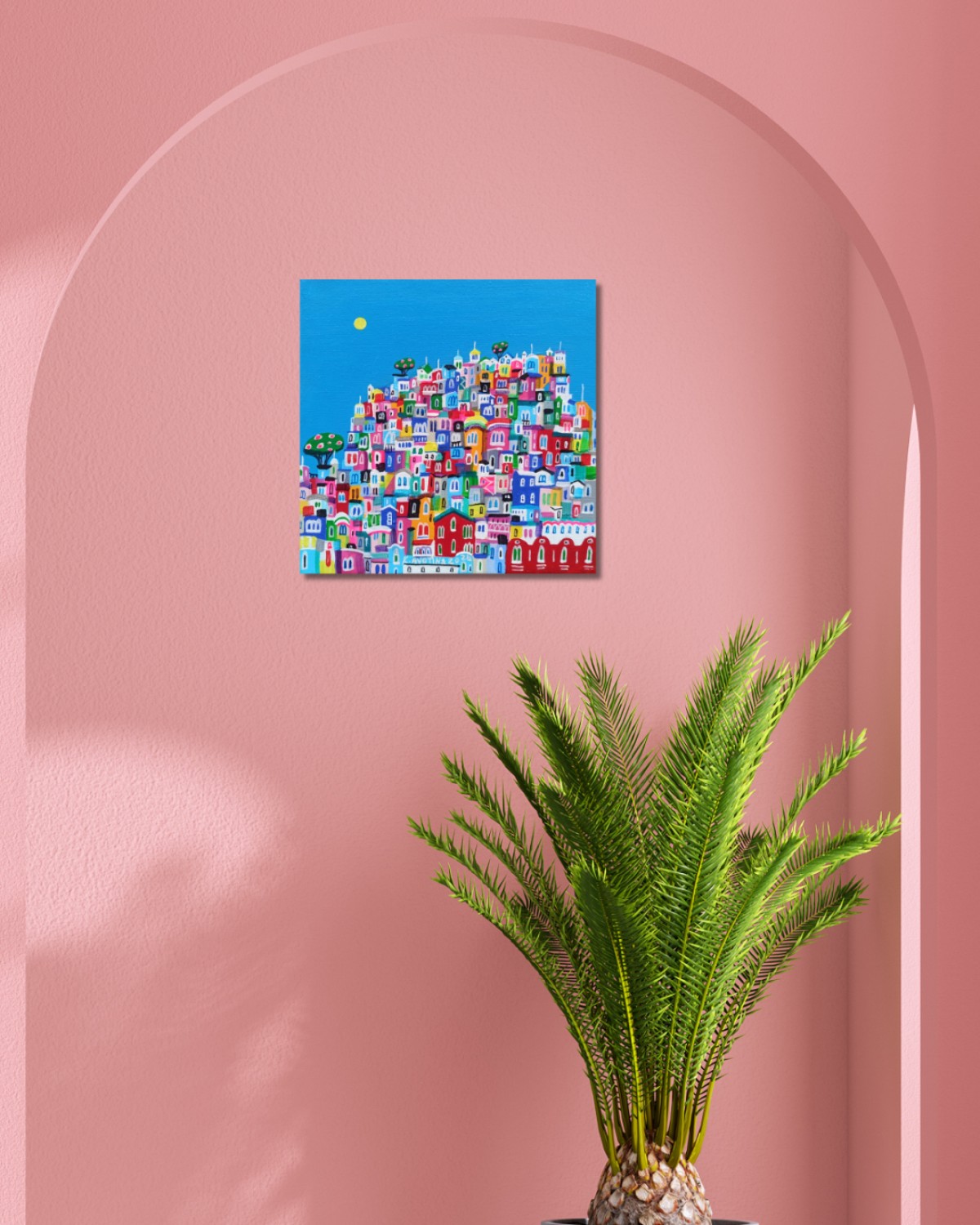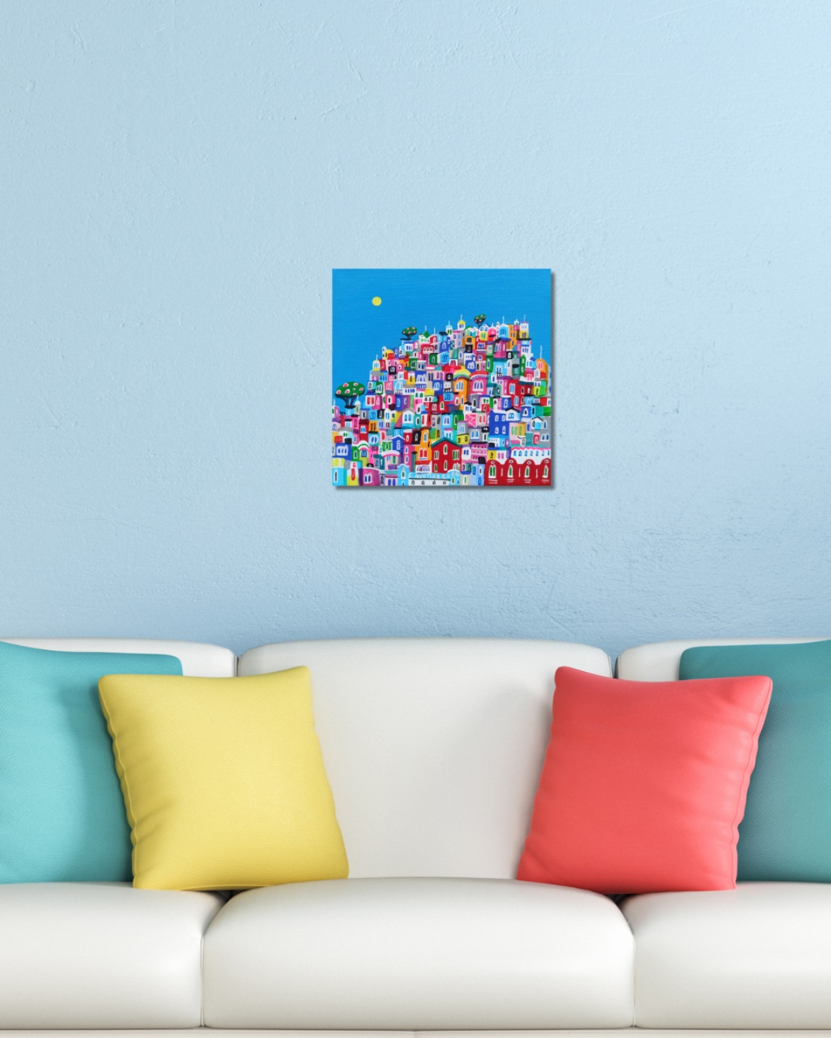 The painting is 2 cm deep and can be hung without an additional frame, also all picture sides are painted.