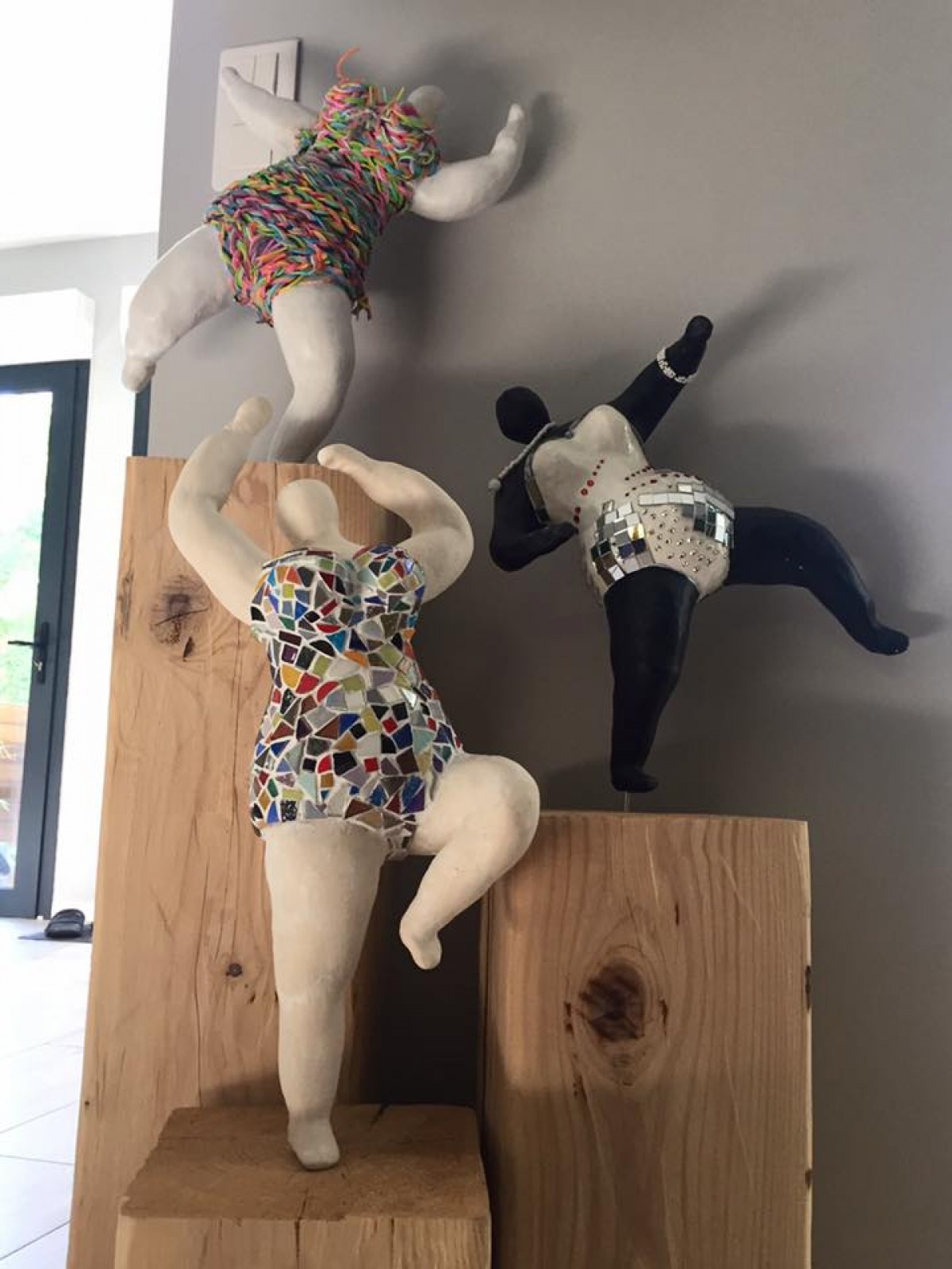 En argile, divers matériaux pour les habiller strass, scoubidous, emaux.