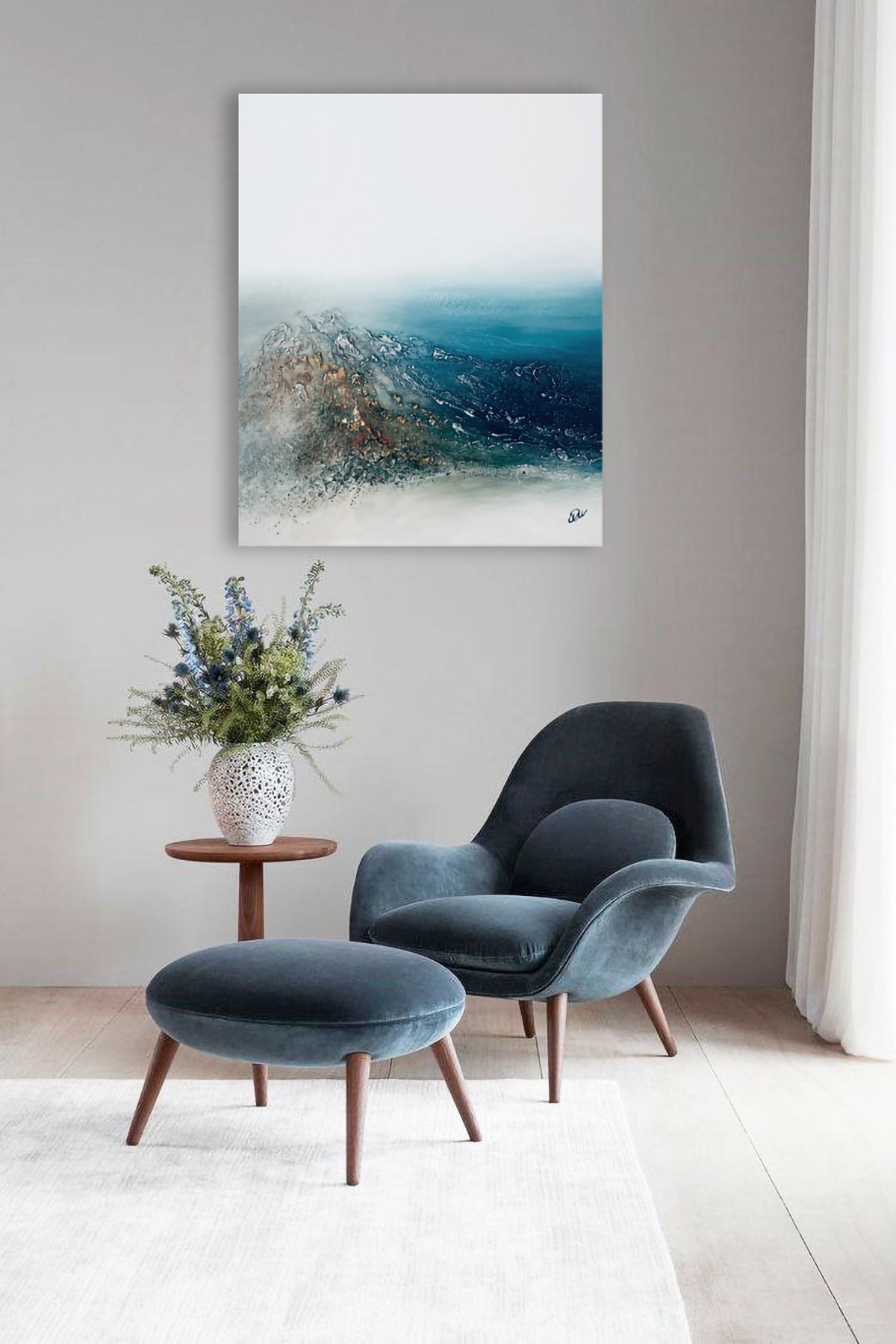 Each brushstroke carries calm energy, a longing for freedom and inner balance. This work captures a moment when time stands still, leaving only light and breath. It invites the viewer to dive inward, to feel ease and clarity.