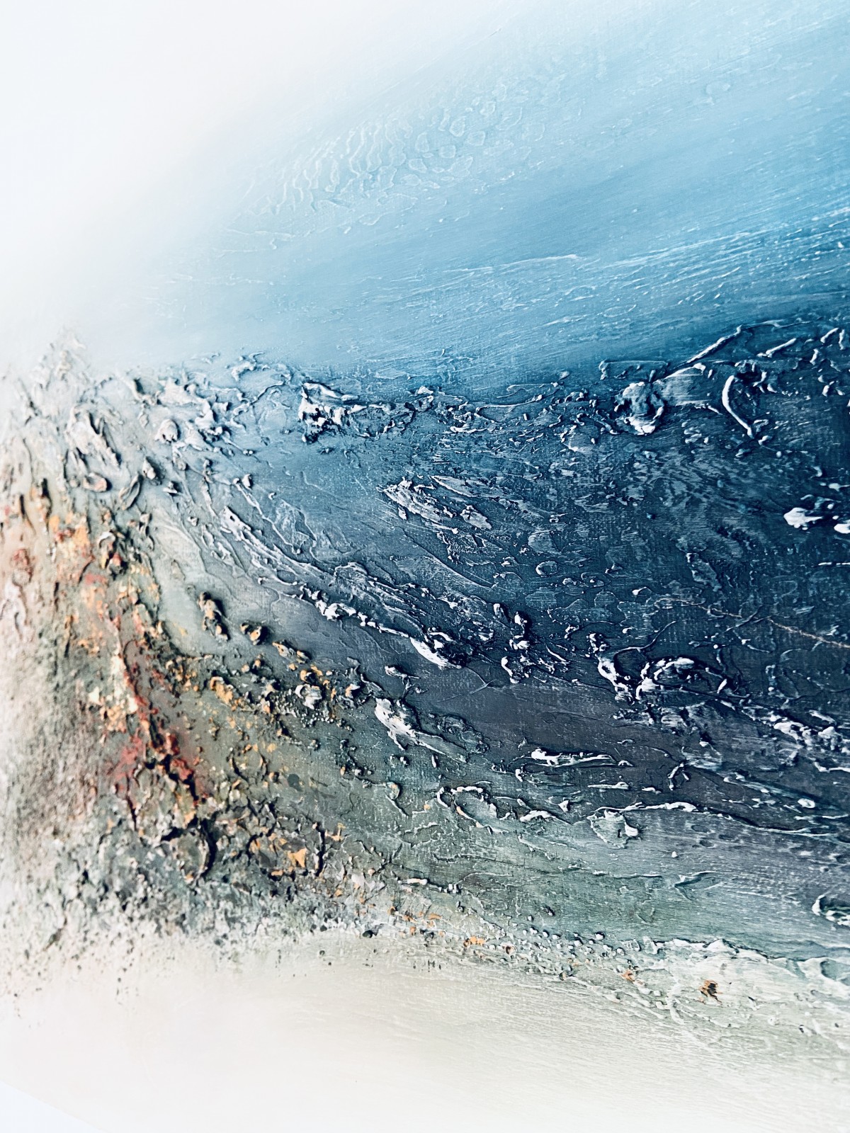“Blue Silence” Structural paste painting, 61 x 50 cm, unframed.