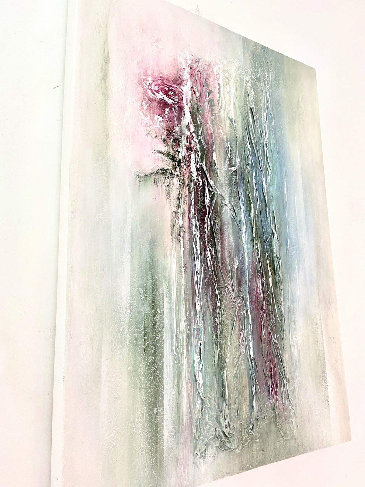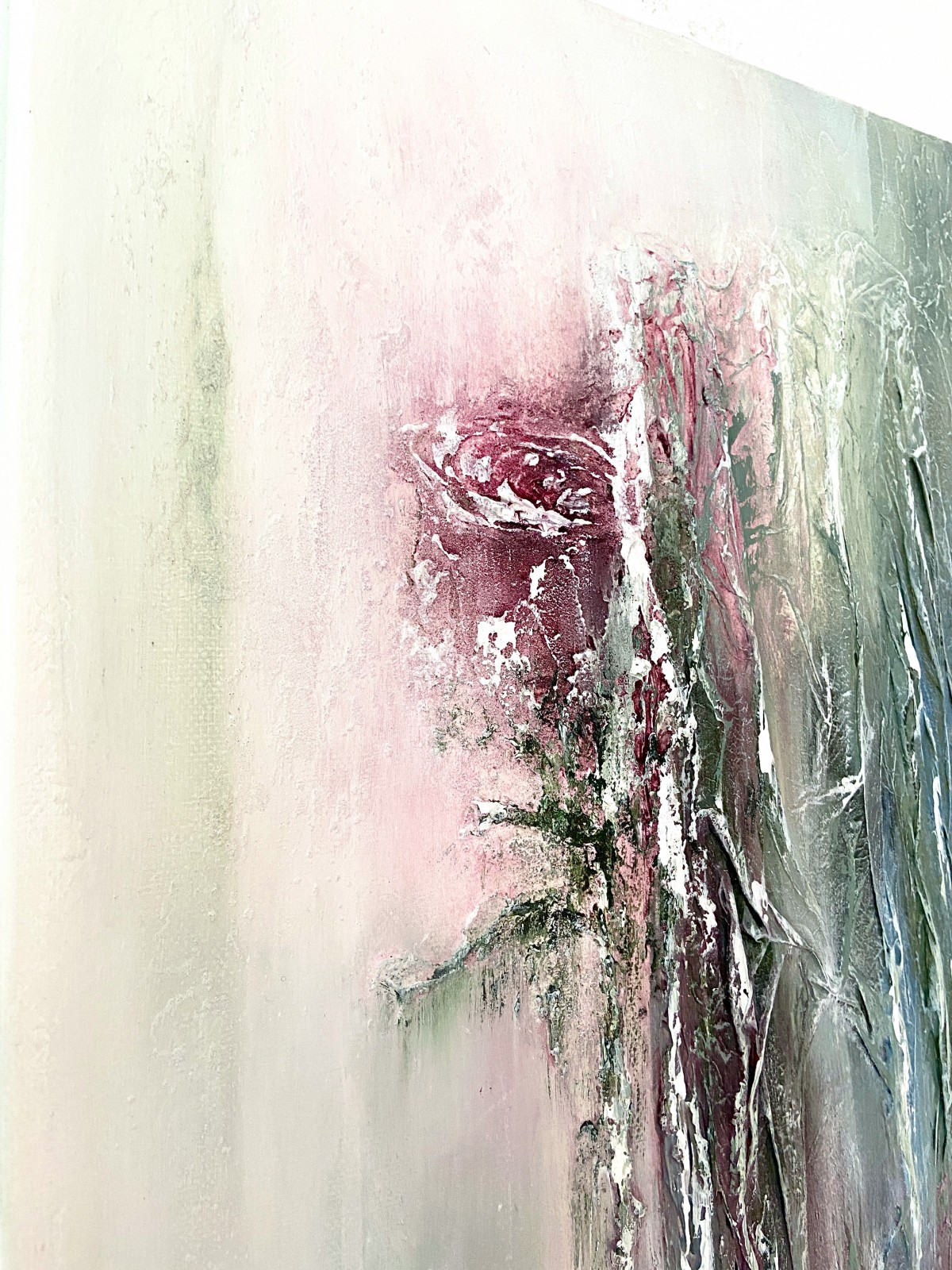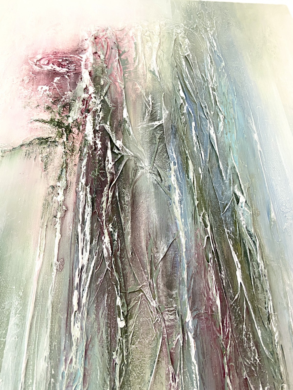 Painting In the Embrace of Ice, acrylic, white pink green, abstract, texture, unframed