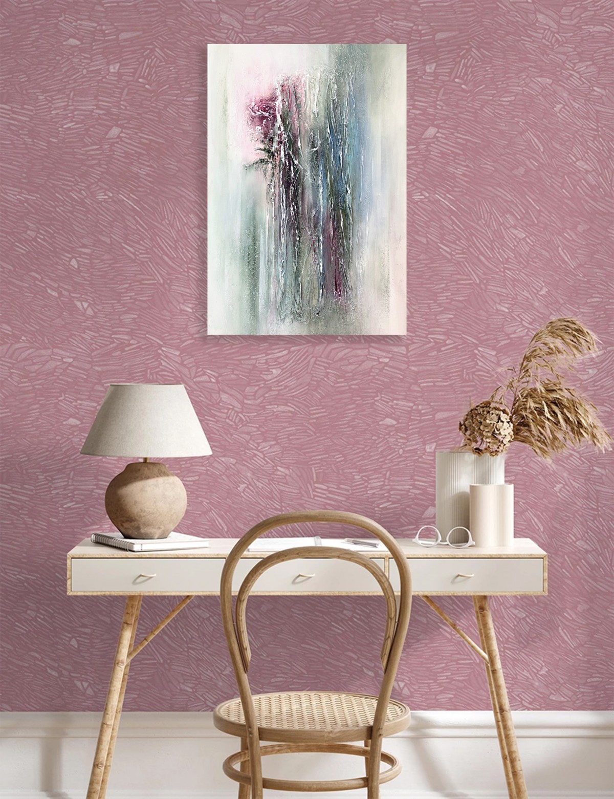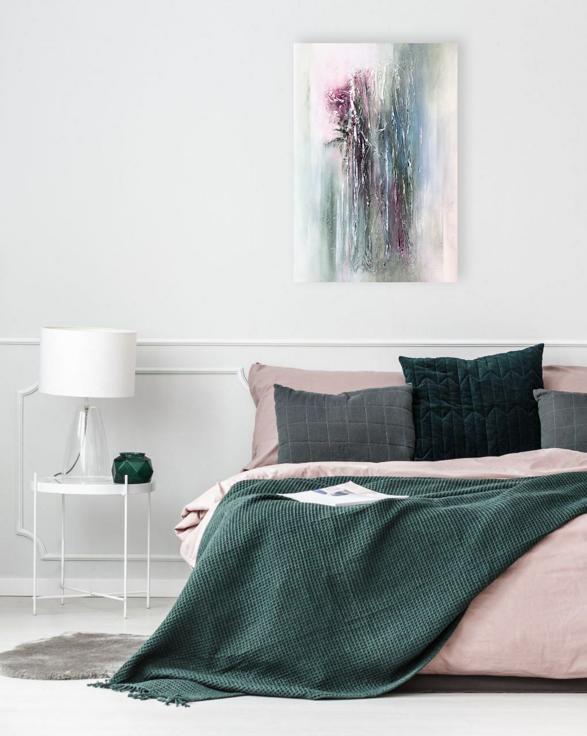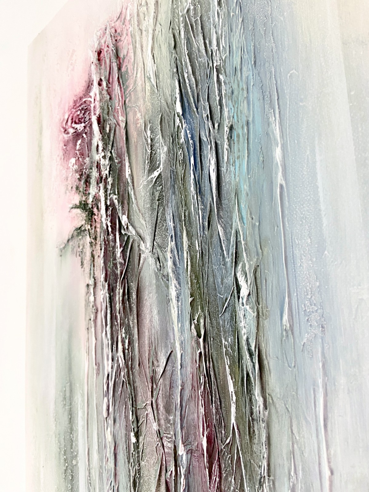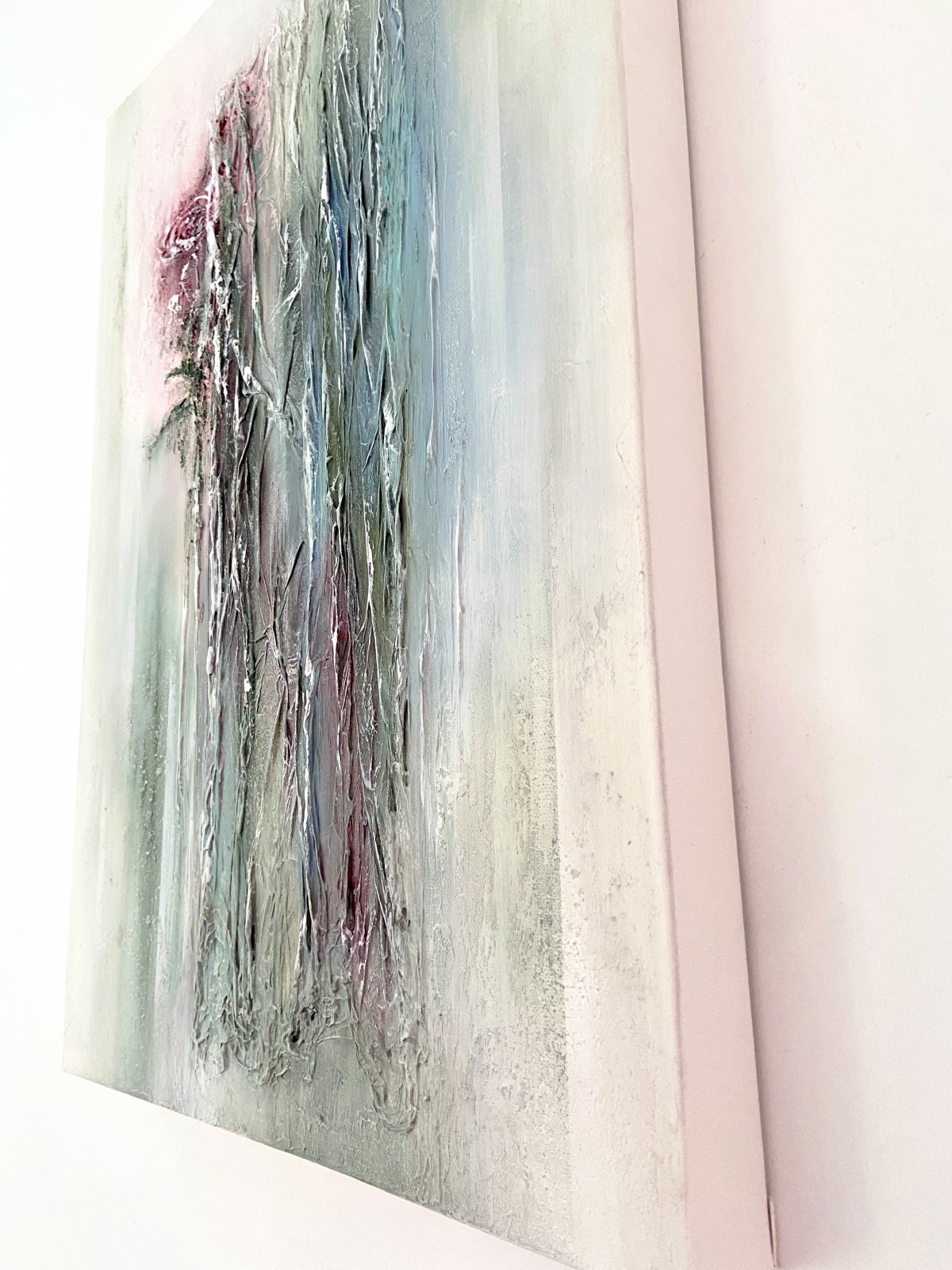 Painting In the Embrace of Ice, acrylic, white pink green, abstract, texture, unframed