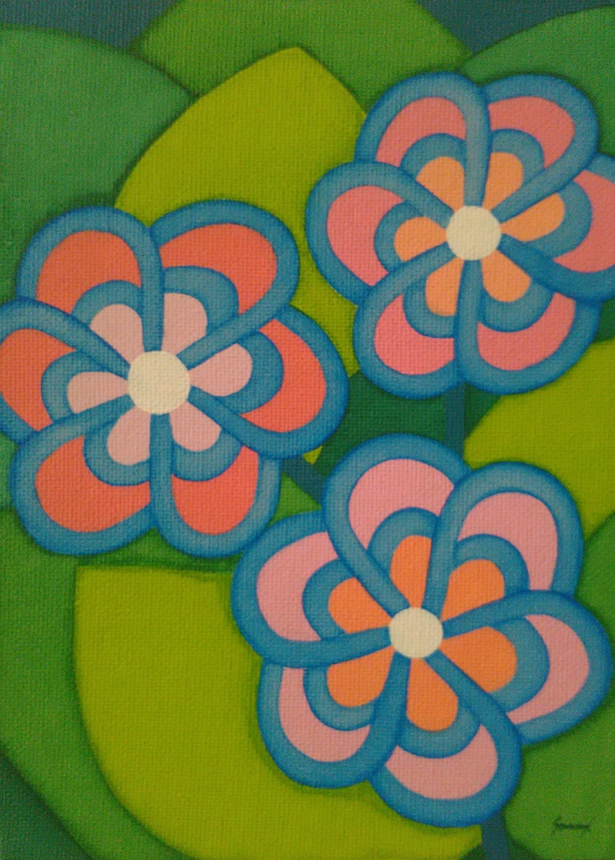 This is a small acrylic painting of three flower I named Malias. It has been painted on canvas panel.