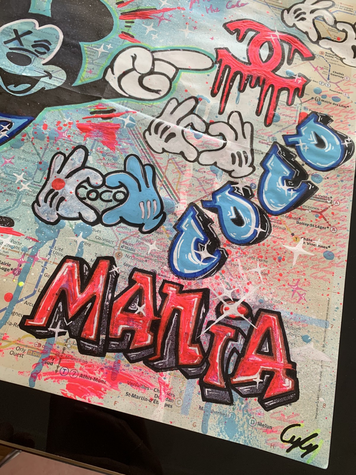Painting: knife painting / aerosol / acrylic / posca / felt / sticking
