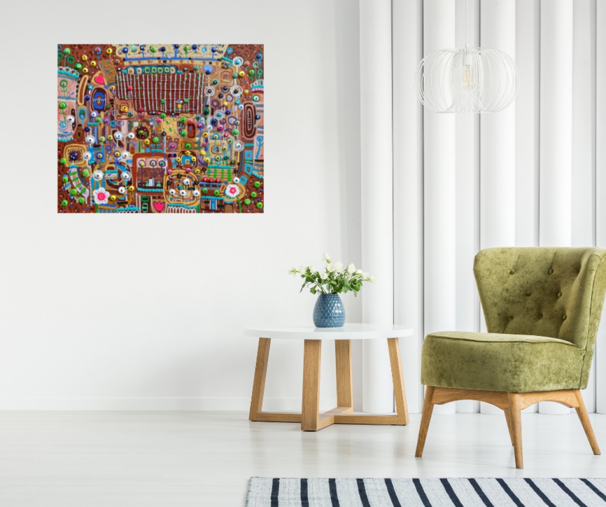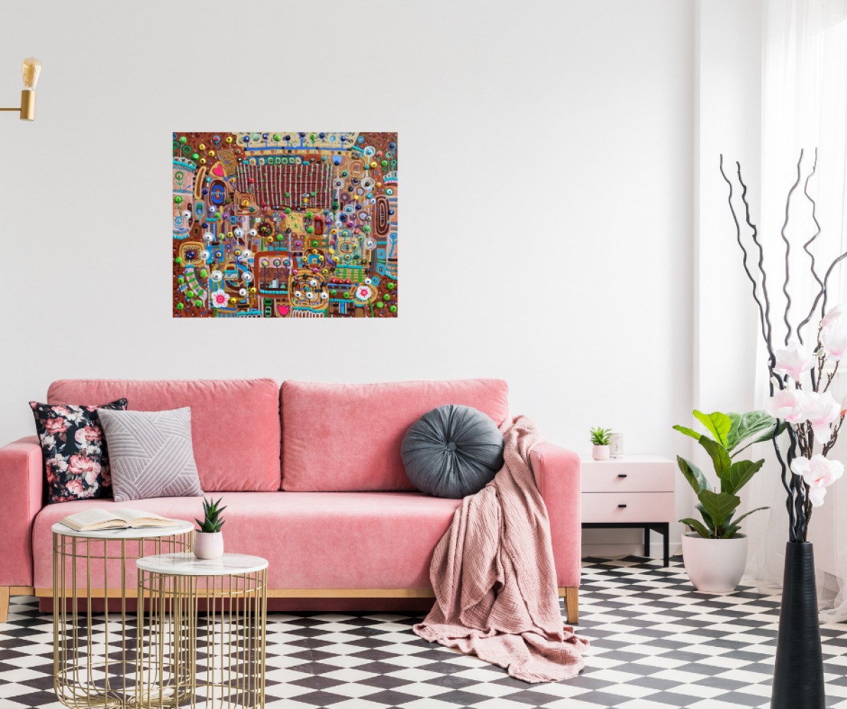 The painting is 4 cm deep and can be hung without an additional frame, also all picture sides are painted.