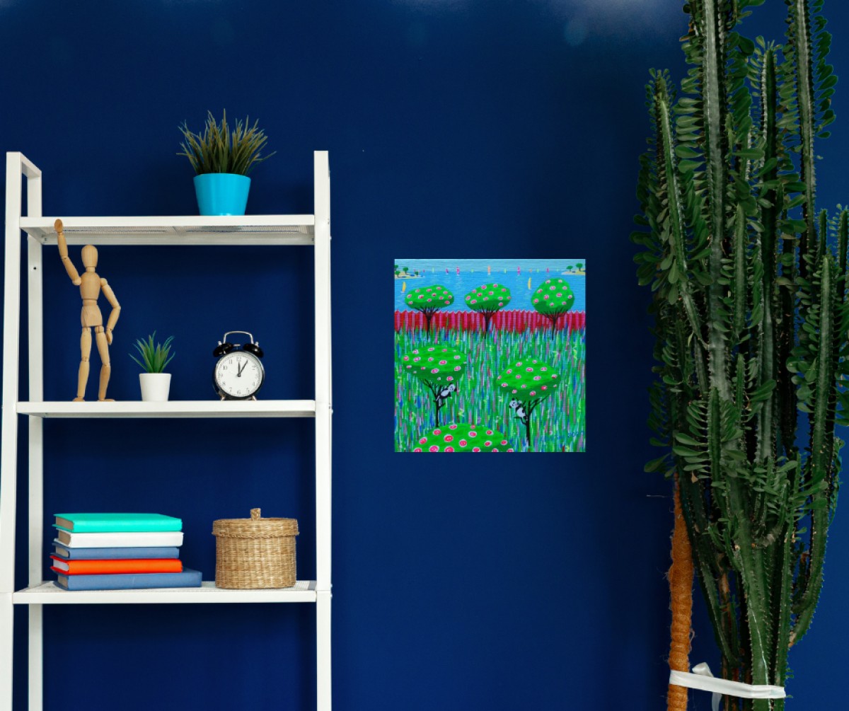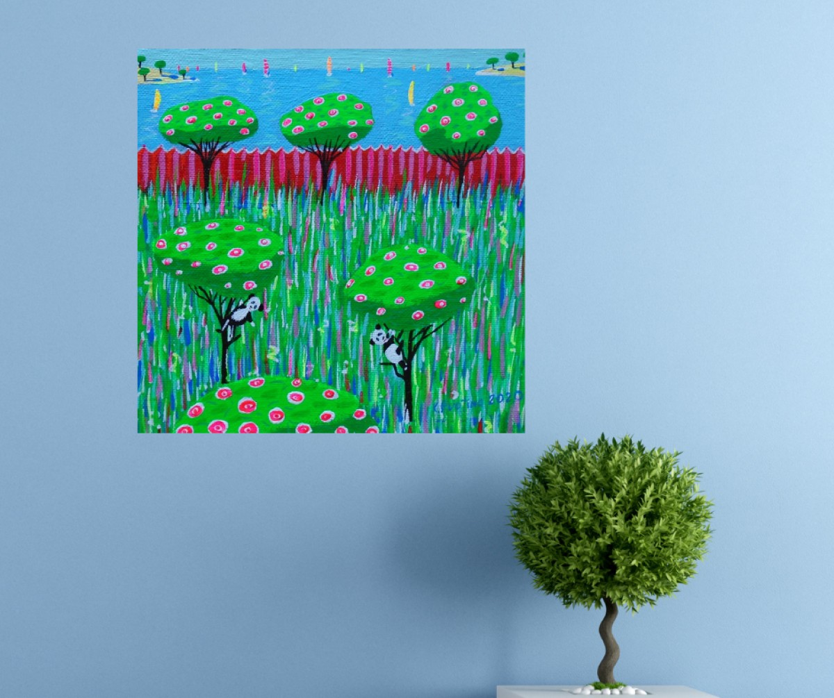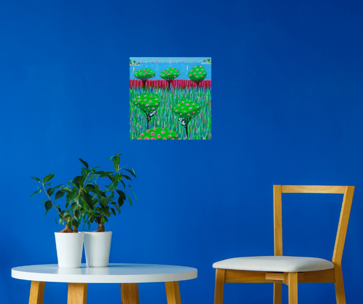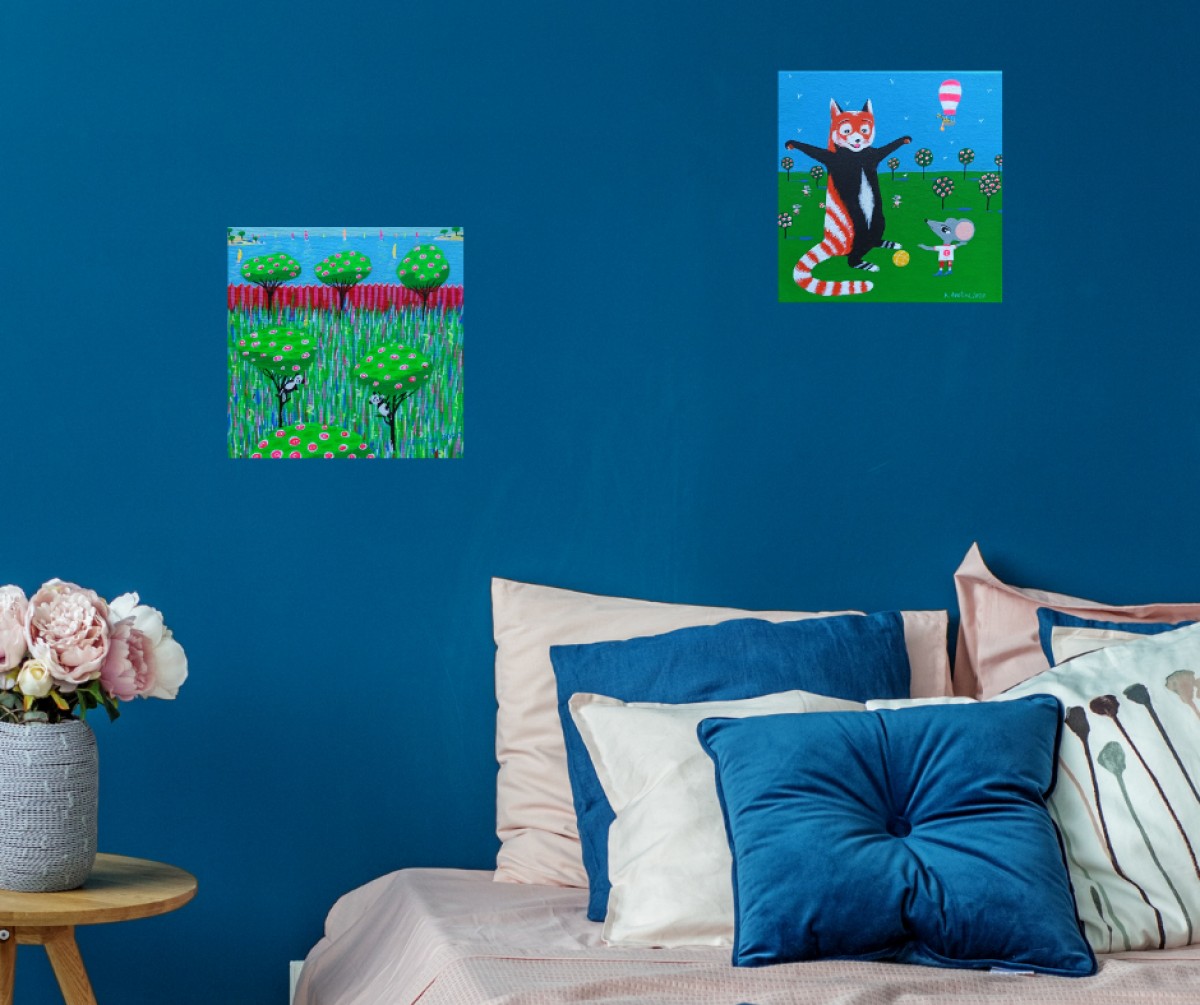 The painting is 4 cm deep and can be hung without an additional frame, also all picture sides are painted.