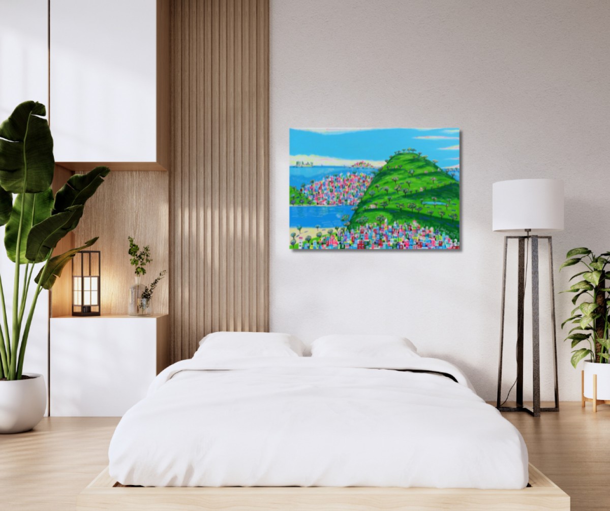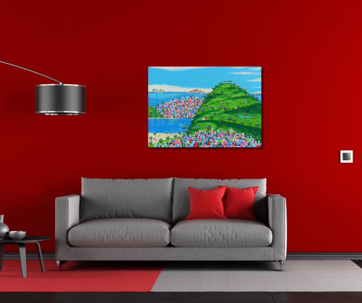 The painting is 2 cm deep and can be hung without an additional frame, also all picture sides are painted.