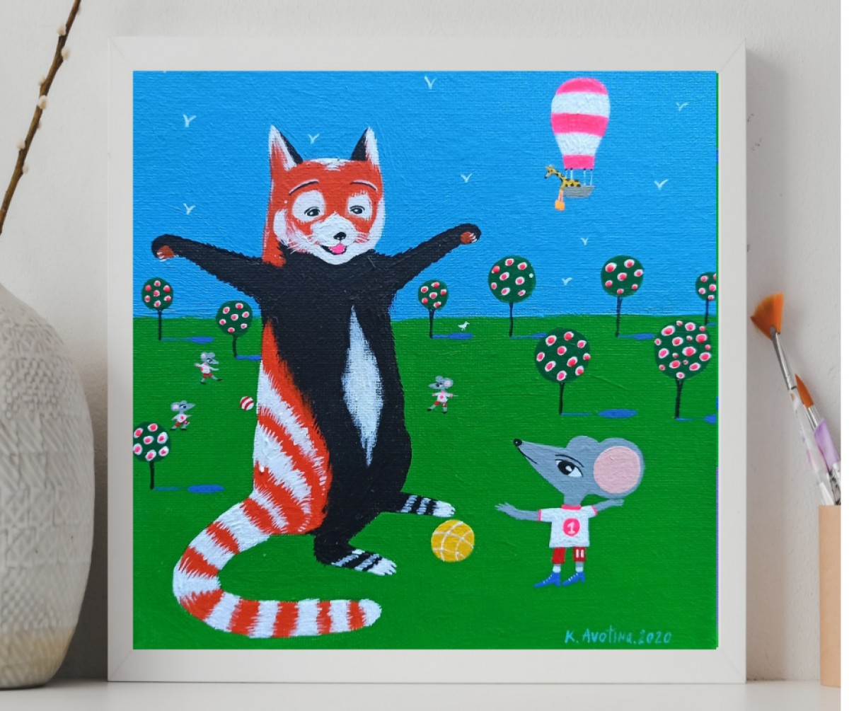 The painting is 2 cm deep and can be hung without an additional frame, also all picture sides are painted.