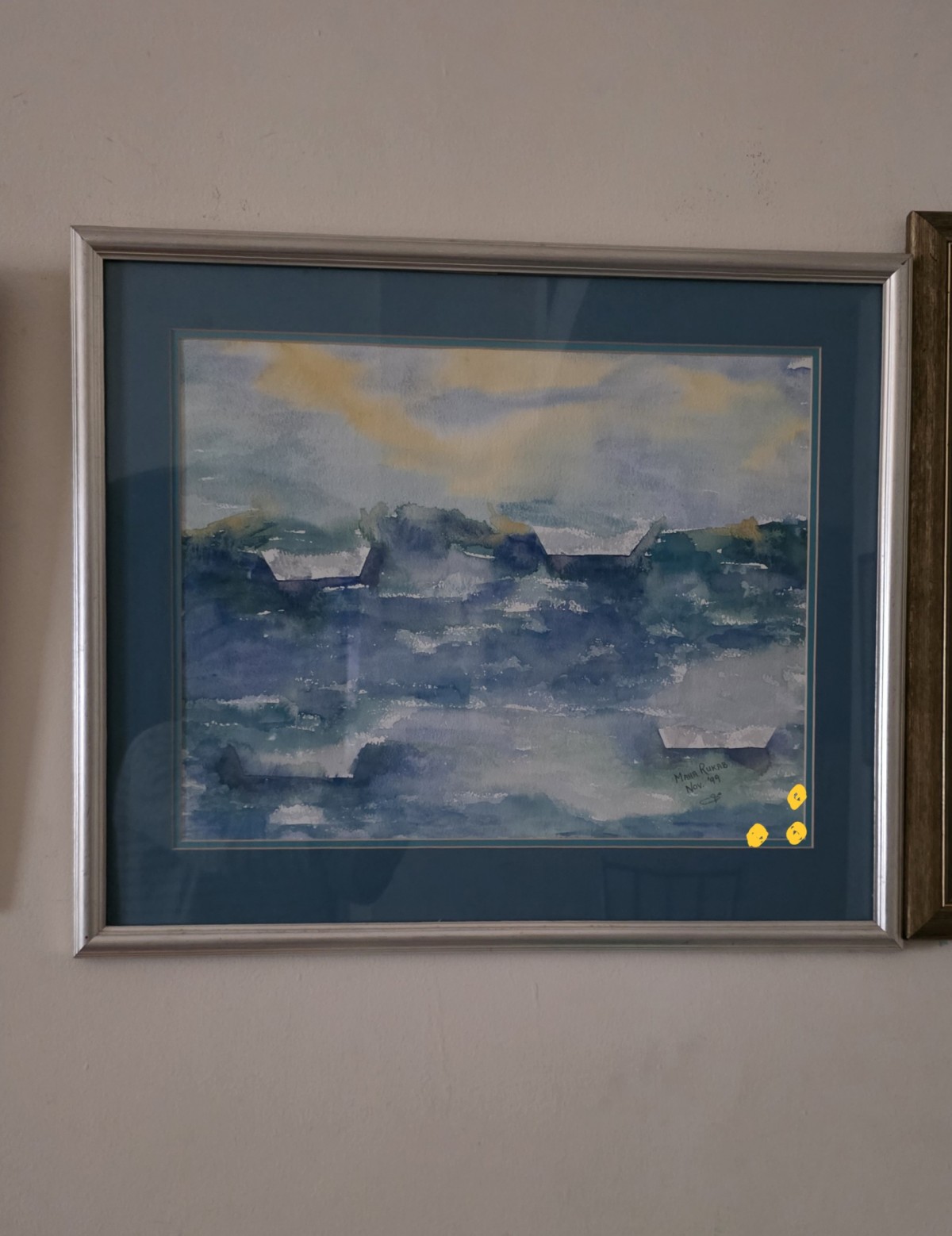 This original artwork, titled "Ray of Hope", was inspired by Inspired by a walk to the beach. The idea of divine grace and companionship. It represents the opportunities that promise protection, safety, security, and peace. The "Boats of Hope" symbolize our journey through life, guided by a higher power. Inspired by a walk to the beach.