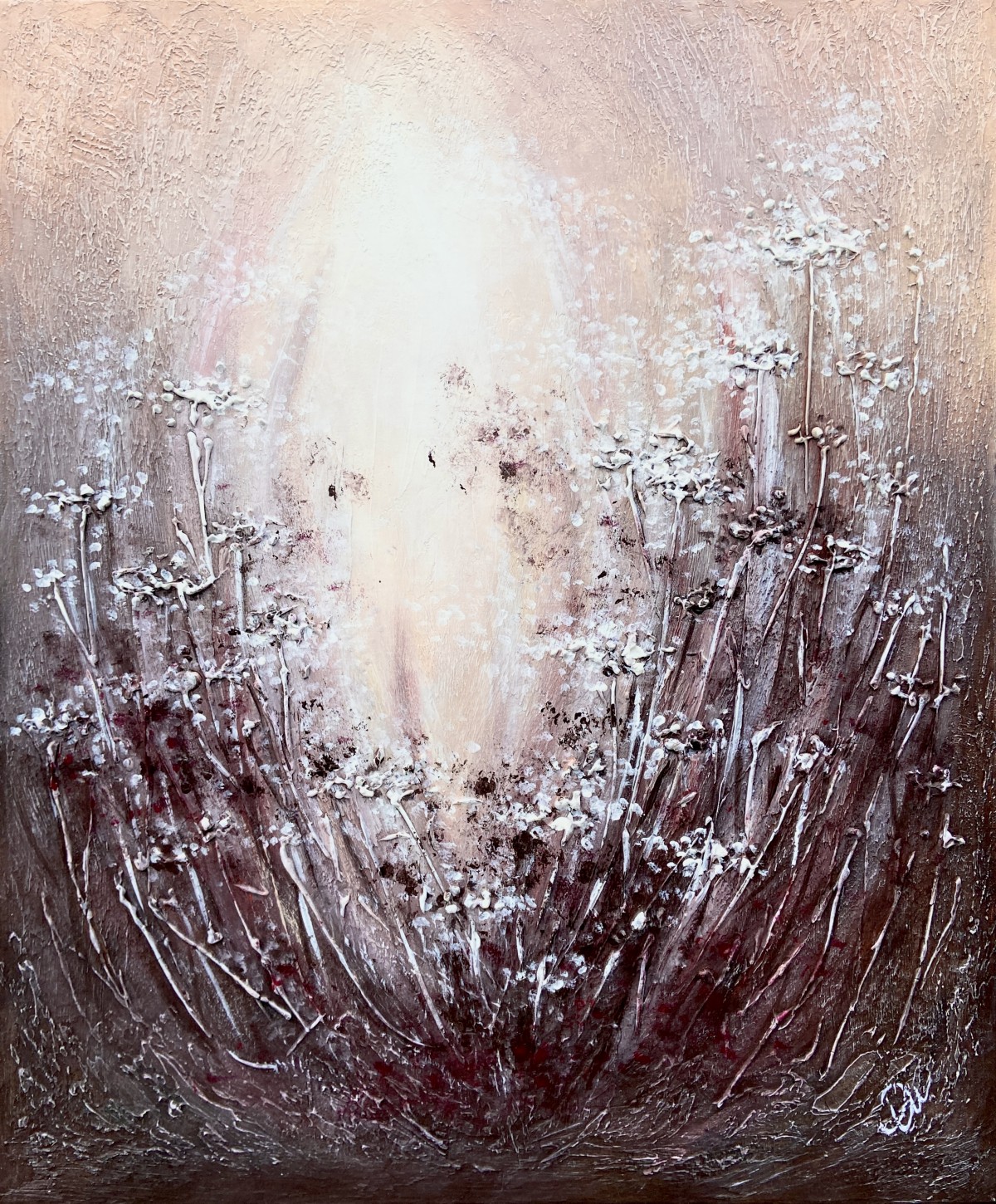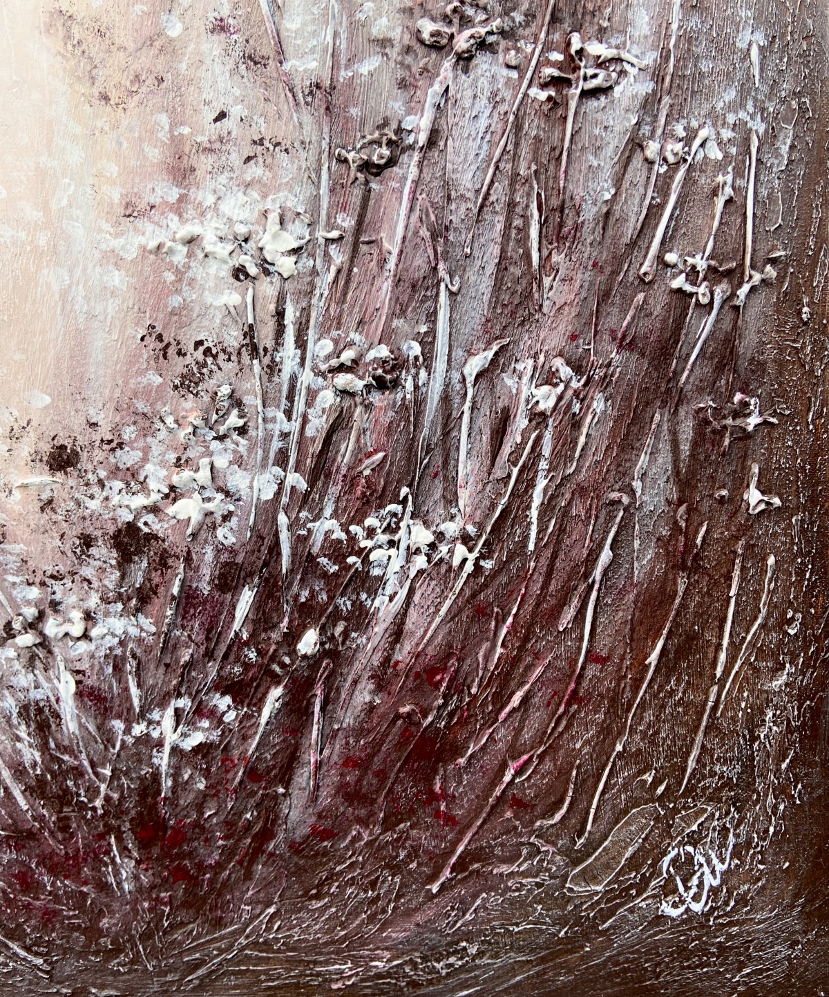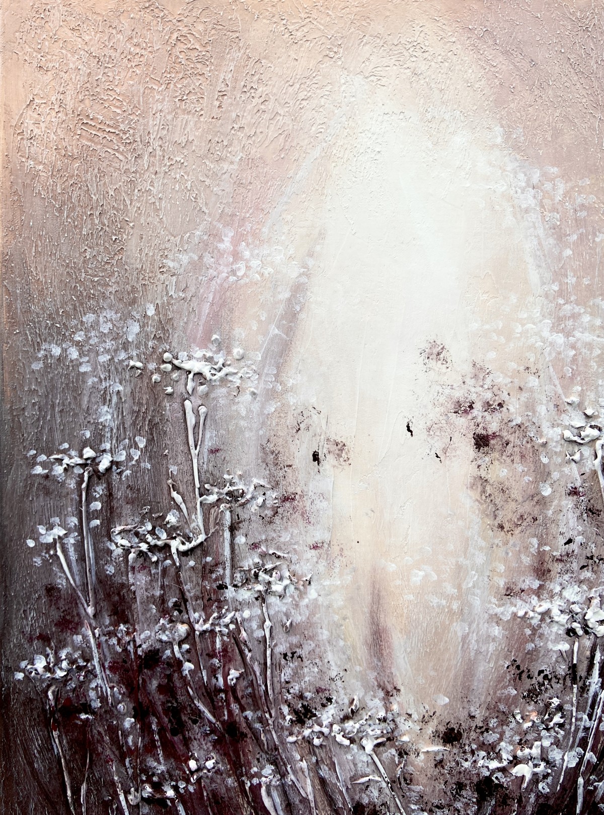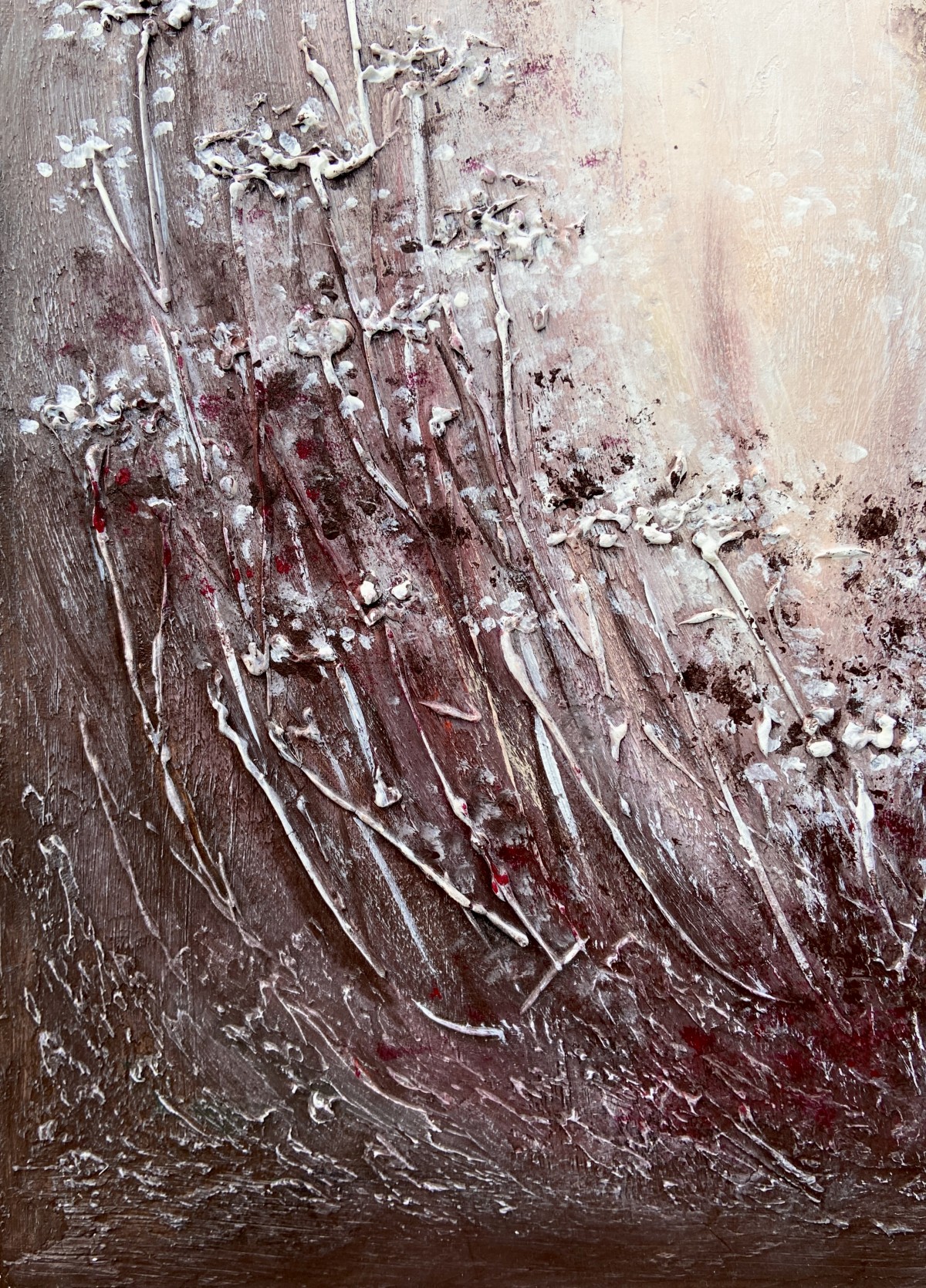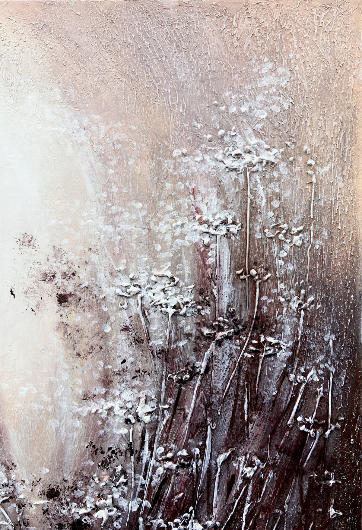 Textured paste creates volume, making the stems seem to reach toward the viewer.