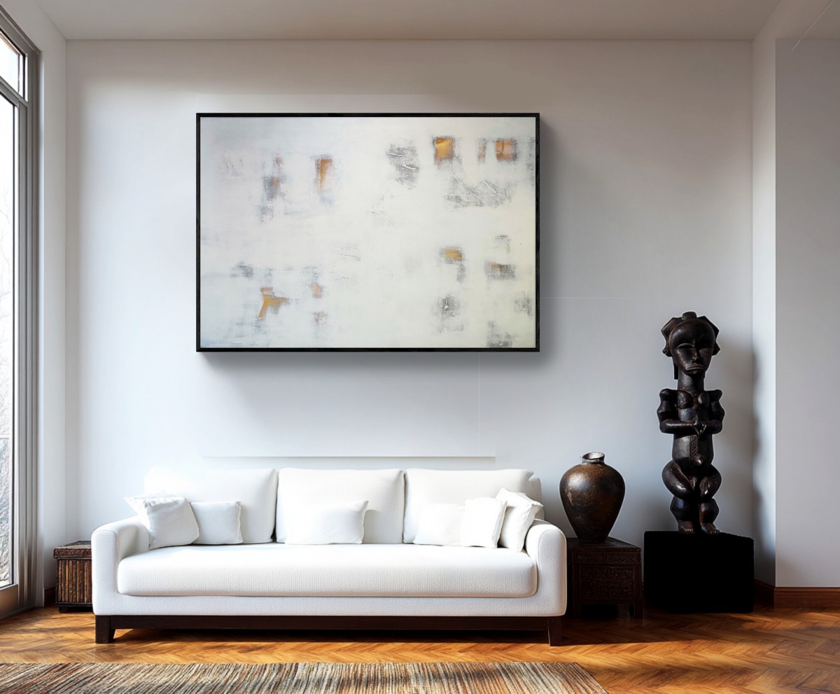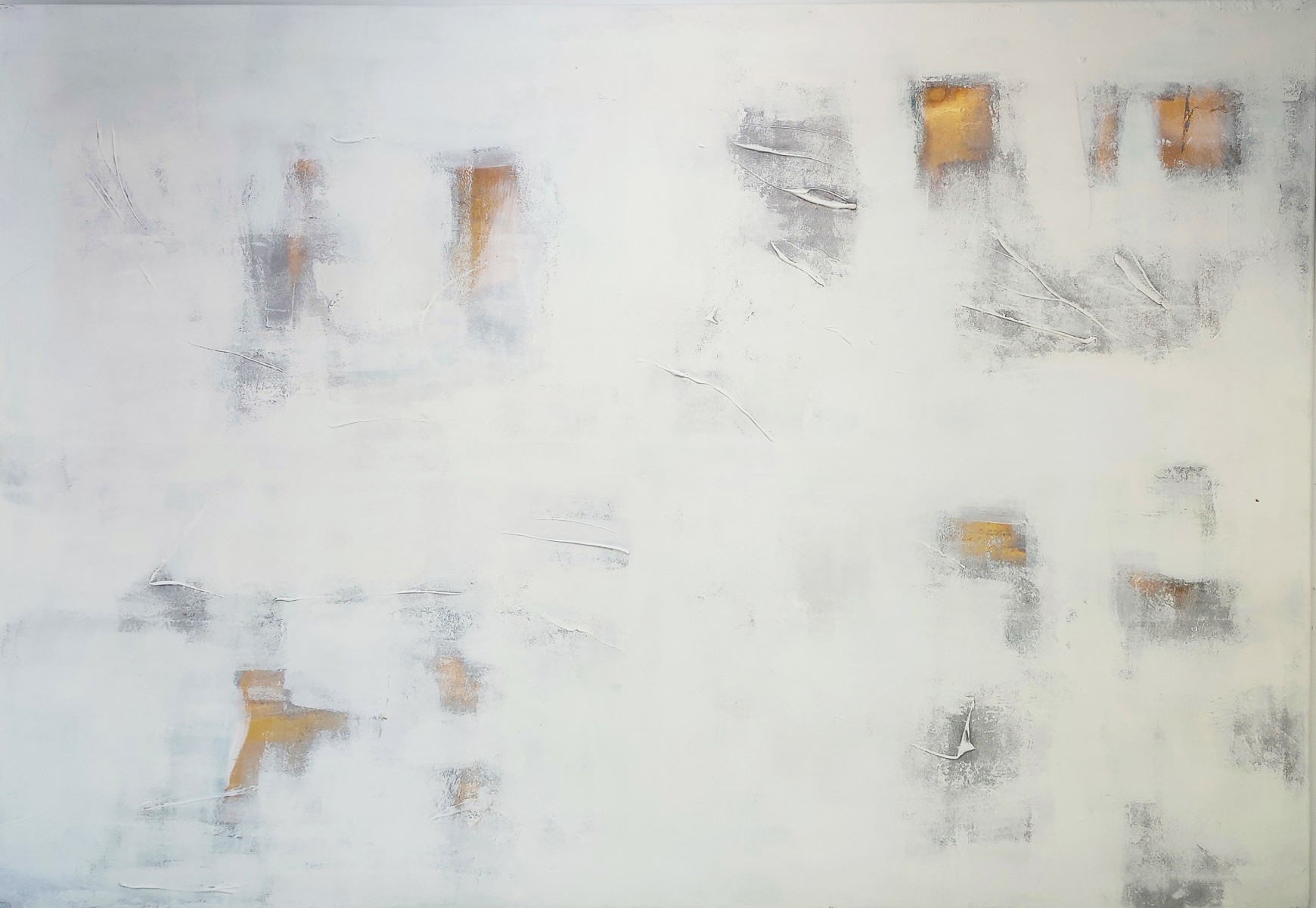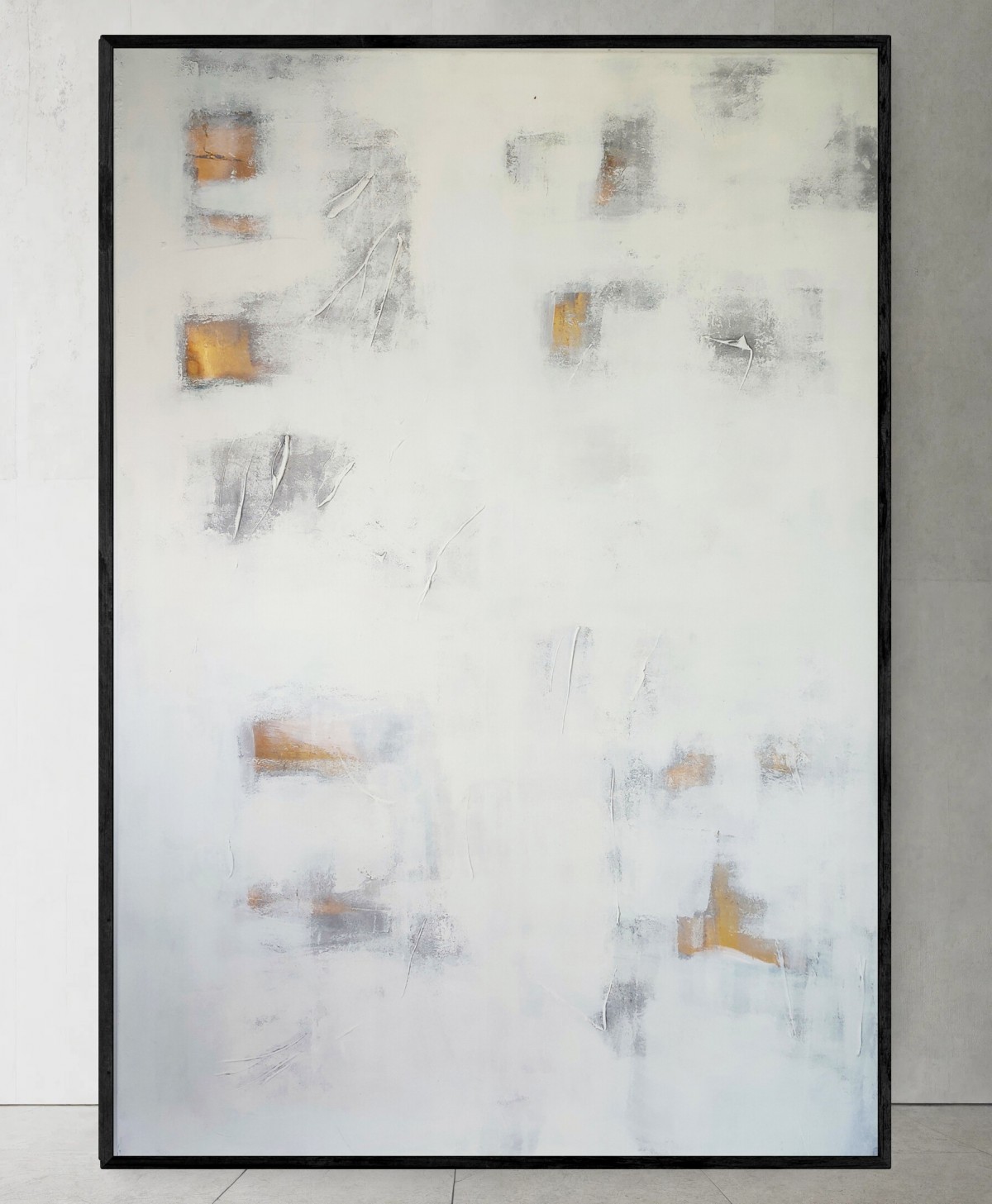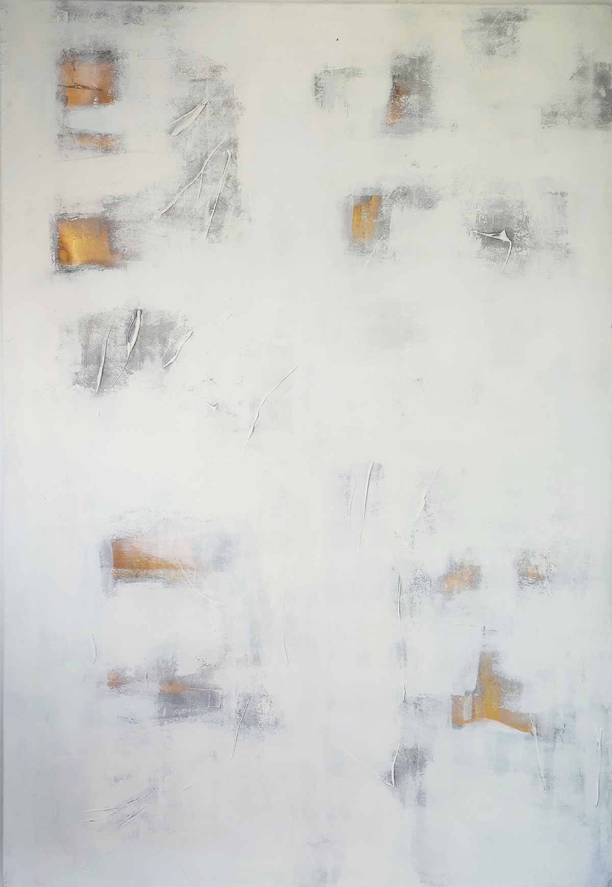 Feuille d'or et peinture sur toile, grand format 130/100 cm environ .