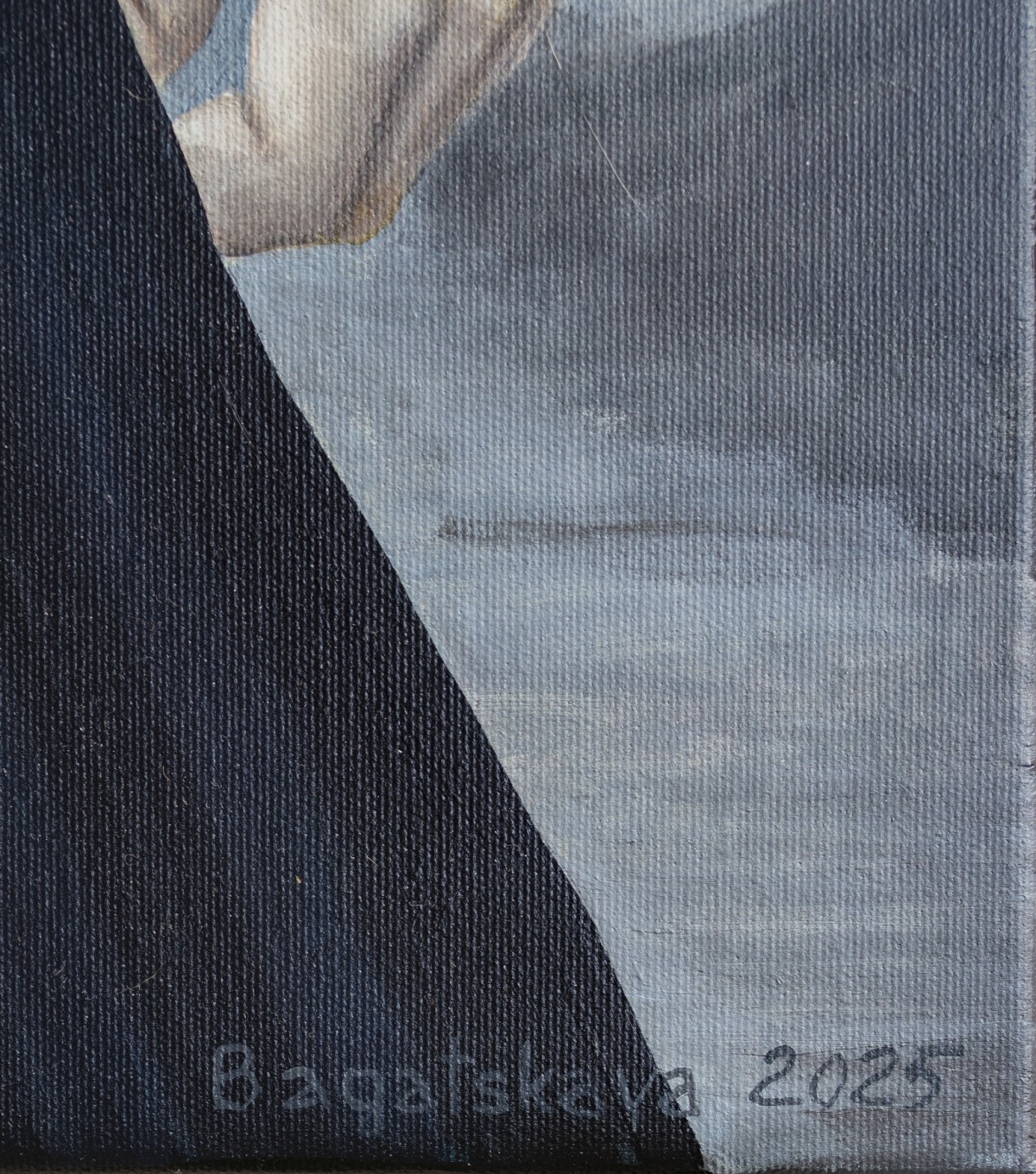 Dutch acrylic paints Amsterdam tm and Italian fine-grained canvas by Unico were used. The finish is satin varnish, and the edges are painted in the background color. This painting is created on a pre-stretched canvas on a wooden frame. It is carefully packed in a cardboard box with layers of bubble wrap. The artwork is signed and accompanied by a certificate of authenticity.