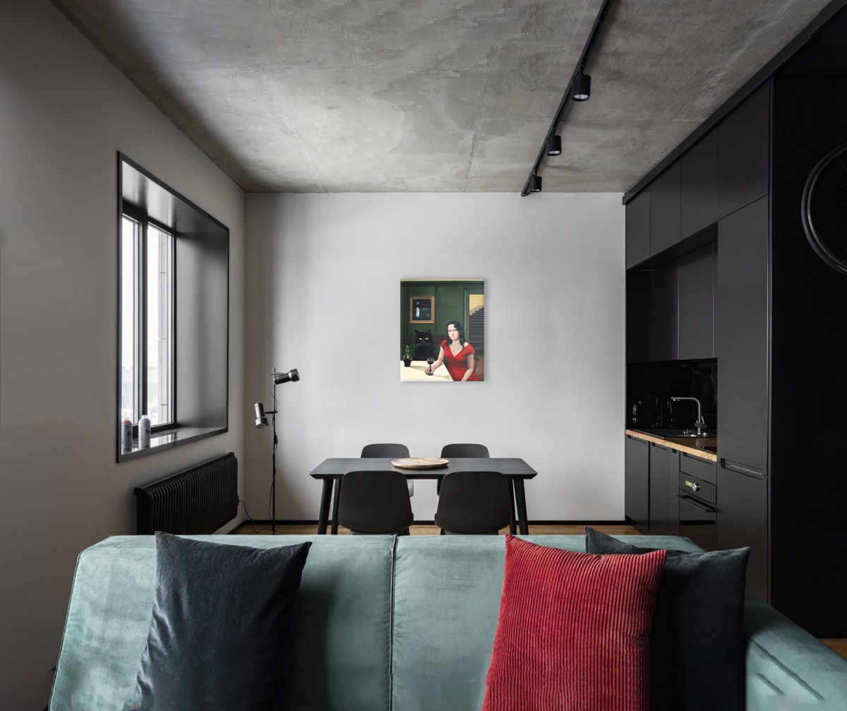 A woman and her cat — the image of comfort. Yet beneath the surface lies the price of that comfort. She cannot leave, cannot collapse, cannot be reckless. The cat demands structure, food, affection, and presence. She dreams of foreign places, of letting go. But she is held in place by soft fur and round golden eyes — a sweet, subtle obligation. This painting captures the bittersweet irony of caretaking love: the one thing you cherish is the reason you stay still.