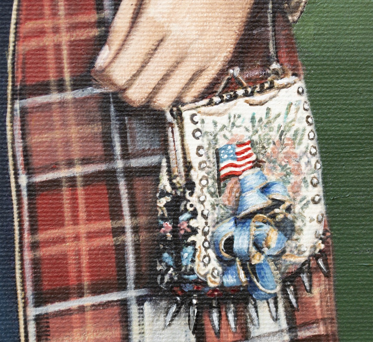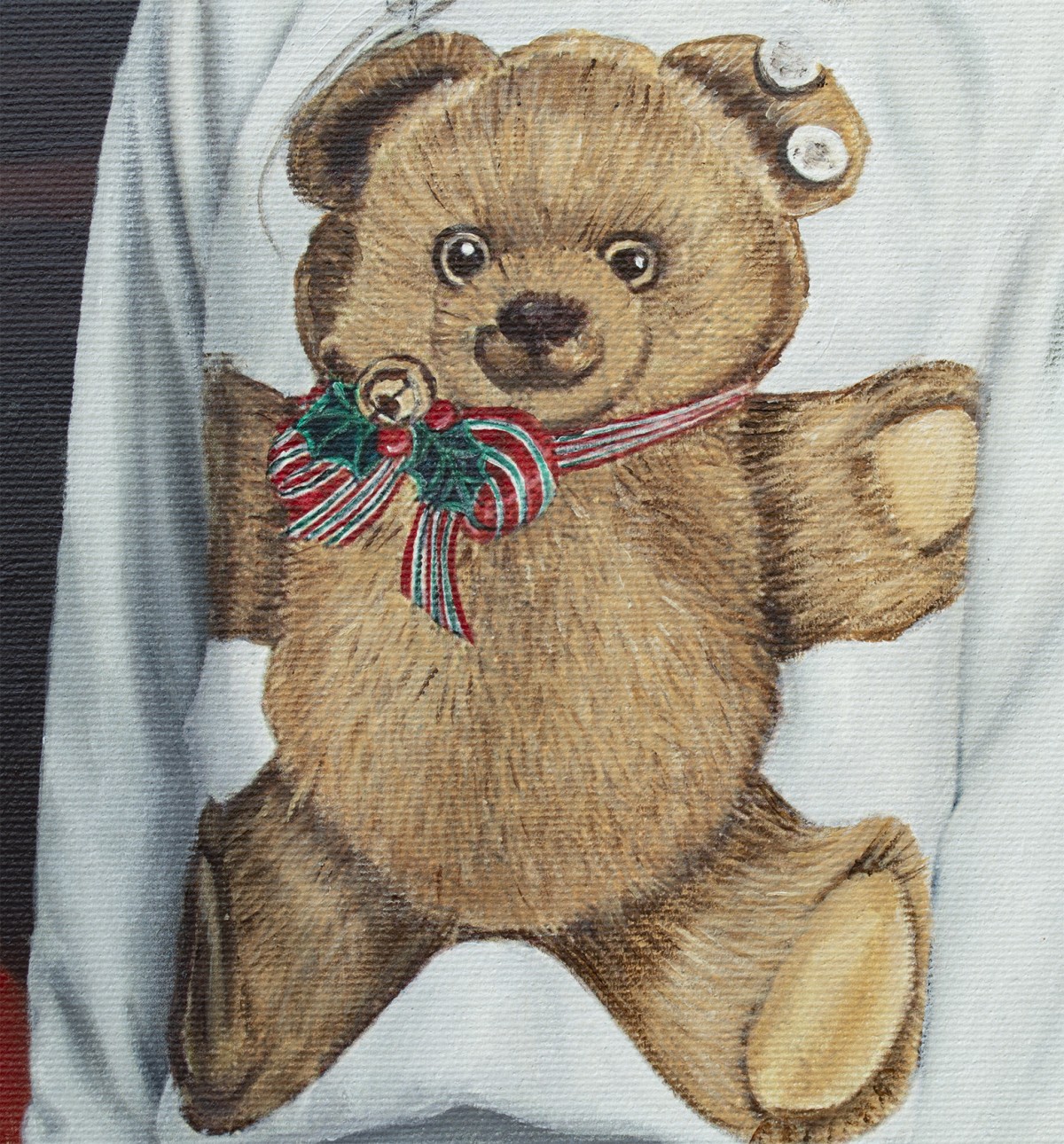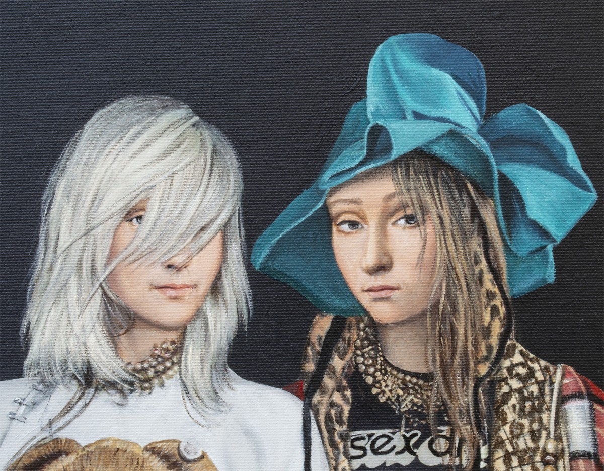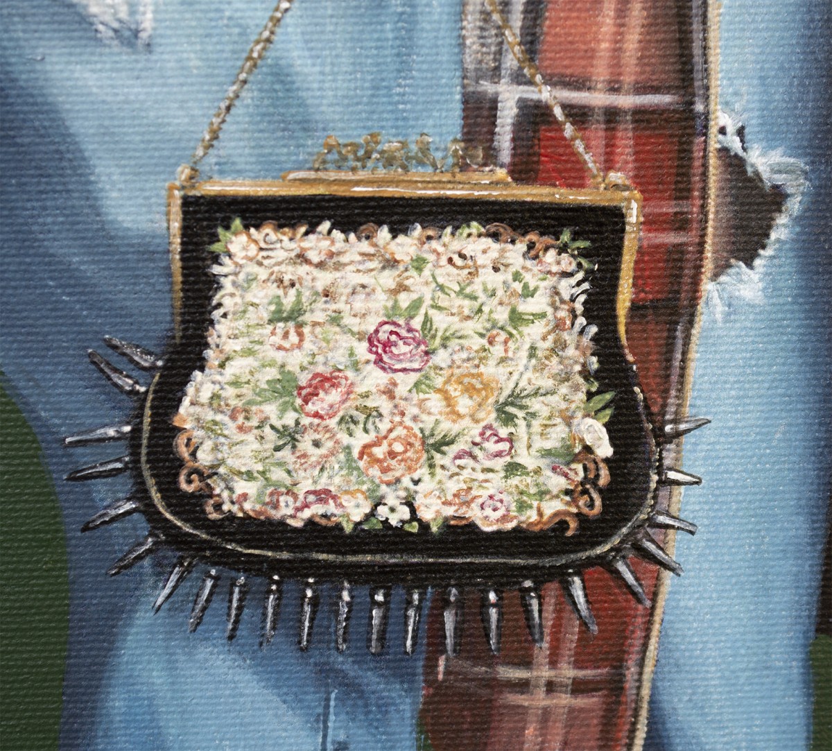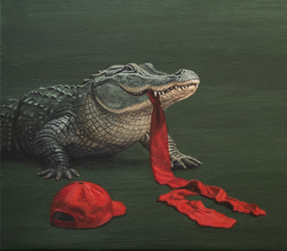 This painting bridges irony, tenderness, and rebellion. It invites collectors to feel the tension between innocence and danger, humor and unease, pop culture and quiet protest. Every symbol holds a whisper — the crocodile alluding to institutional captivity, the red fabric to rhetoric and ego. A singular work of both beauty and commentary, it resonates far beyond the frame.