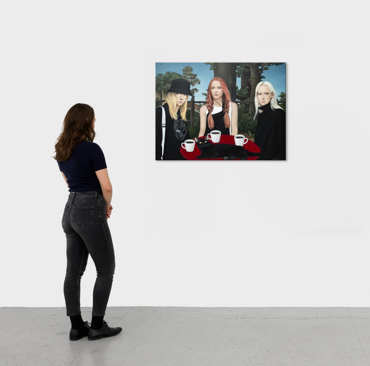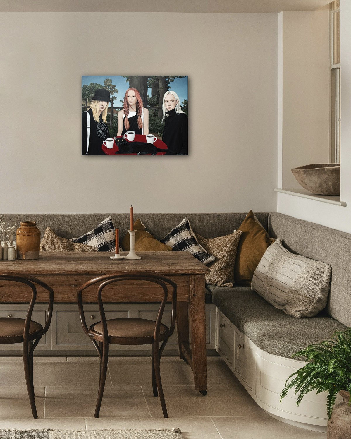 This artwork is a contemporary homage to Anthonie van Eyden’s The Card Players. Here, the classic trio around a round table transforms into a dialogue between reality and digital selfhood. The artist’s self-portrait, his avatar, and the portrait of the avatar’s partner appear together for the first time — three reflections of one consciousness, frozen in a calm yet charged moment.